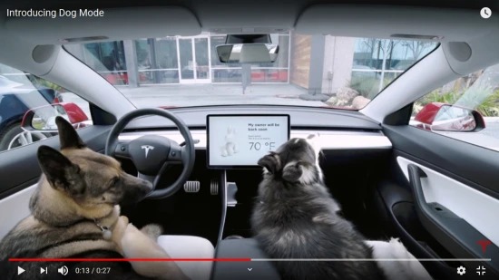 Εκτός αν έχεις Tesla! Η αμερικανική εταιρία εξέλιξε το Dog Mode, ένα σύστημα που διατηρεί δροσερό (ή ζεστό το χειμώνα) το εσωτερικό όταν χρειάζεται να λείψεις για λίγο από το αυτοκίνητο. Μάλιστα, στην οθόνη του ταμπλό εμφανίζεται σχετικό μήνυμα που αναφέρει ότι ο ιδιοκτήτης θα επιστρέψει λίαν συντόμως, για να καθησυχάσει τους περαστικούς που ενδέχεται να ανησυχήσουν στη θέα ενός ζώου μέσα σε σταθμευμένο αυτοκίνητο. Και αν η μπαταρία του αυτοκινήτου πέσει κάτω από το 20% φόρτισης, το Tesla σου στέλνει ειδοποίηση στο κινητό σου!