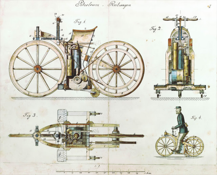 Να θυμίσουμε εδώ ότι μόλις εξήντα χιλιόμετρα πιο μακριά στο Manheim, χωρίς πάντως να το γνωρίζουν οι Maybach και Daimler, ο Karl Benz το 1885 παρουσίασε το δικό του αυτοκινούμενο όχημα ως «motorwagen», με δικής του σχεδίασης κινητήρα, το οποίο τελικά απέσπασε την αντίστοιχη πατέντα στις 29 Ιανουαρίου του 1886. Πάντως στις 8 Μαρτίου της ίδιας χρονιάς οι Daimler και Maybach τοποθέτησαν ένα κινητήρα 462 κ.εκατ. με απόδοση 1,1 ίππων πάνω σε μια καρότσα με τέσσερις τροχούς και έτσι παρουσίασαν το πρώτο στην ιστορία τετράτροχο αυτοκινούμενο όχημα με κινητήρα εσωτερικής καύσης, αφού το όχημα του Benz είχε ένα τροχό λιγότερο!