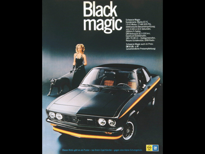Τον Απρίλιο του 1975, λίγο πριν το ντεμπούτο του Manta B, λανσαρίστηκε η τελευταία ειδική έκδοση: Το Manta Black Magic ήταν κατάμαυρο με κόκκινες-πορτοκαλί διακοσμητικές ρίγες στο πλάι. Συνολικά, η Opel κατασκεύασε 498.553 Manta A.