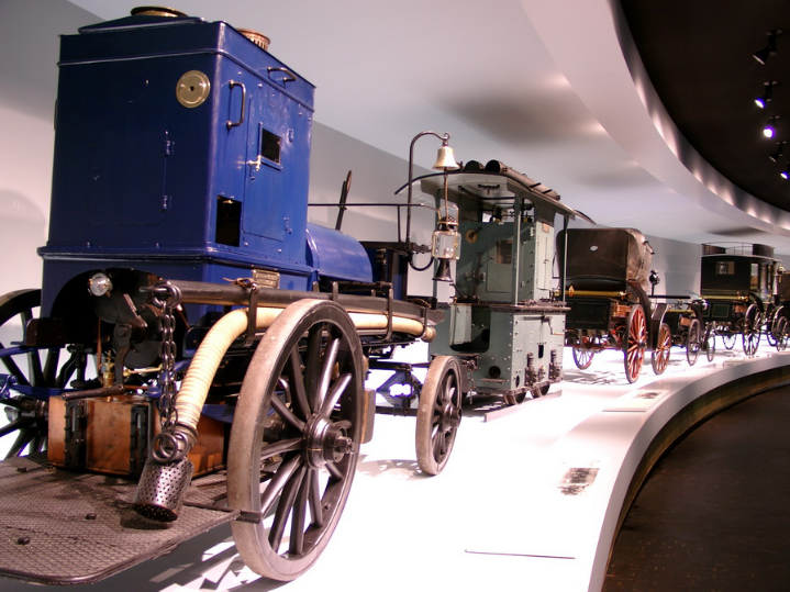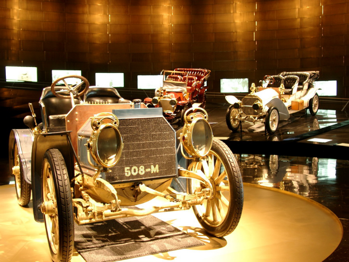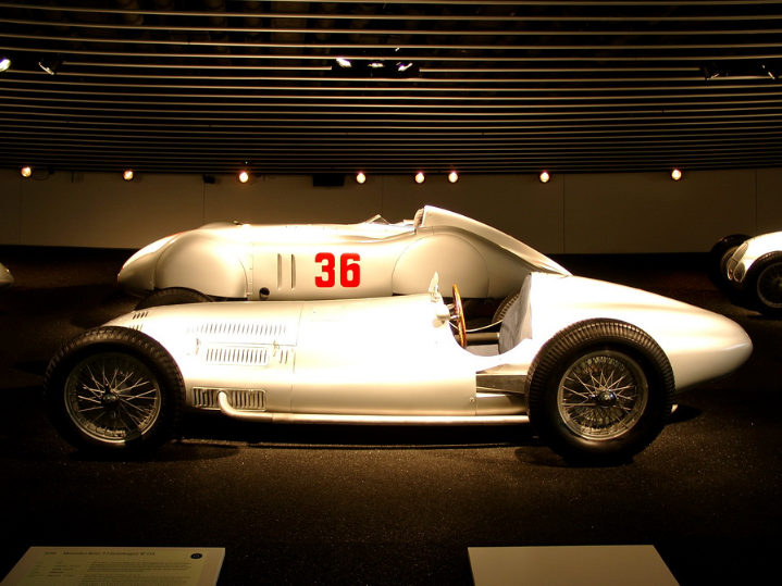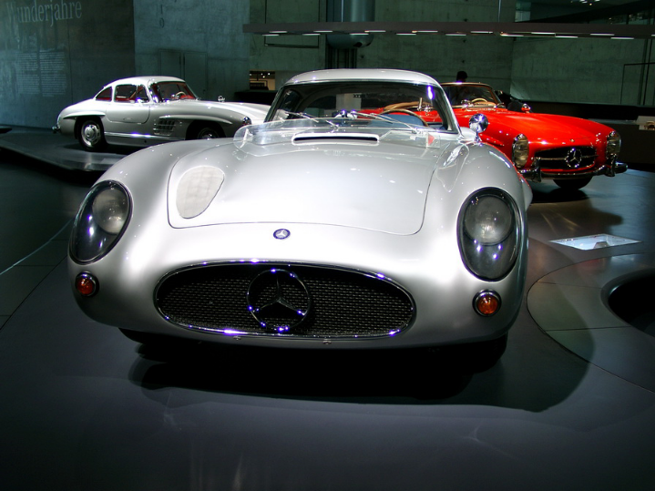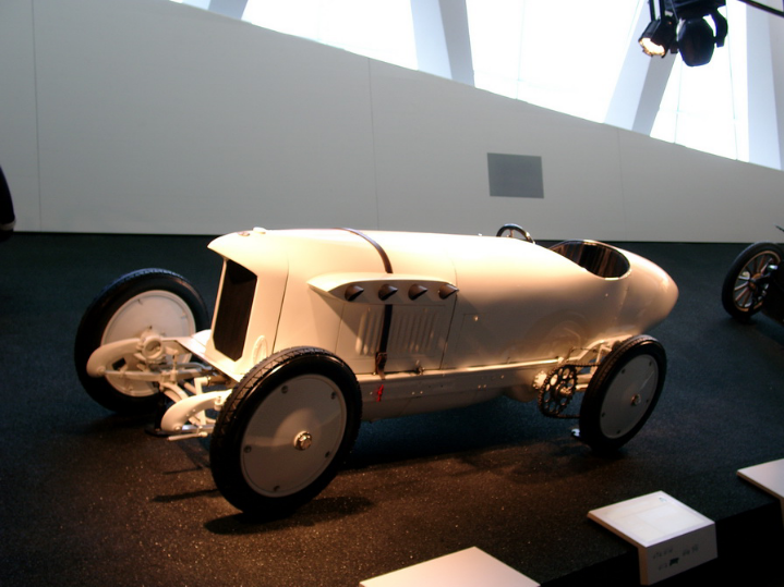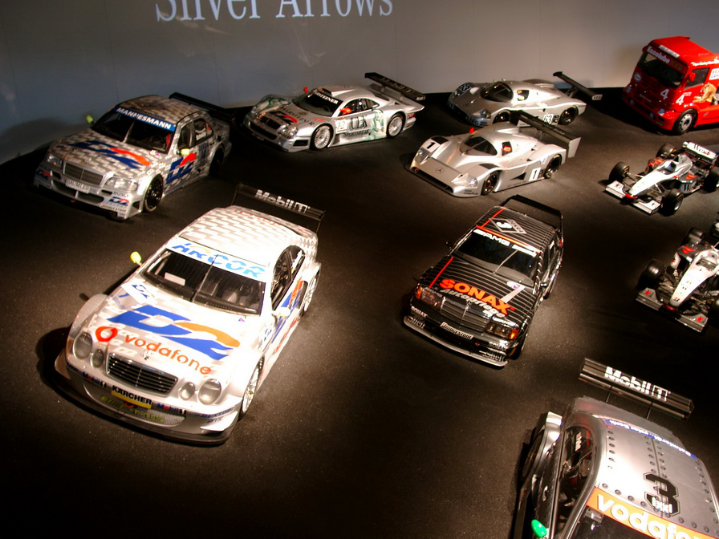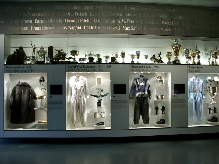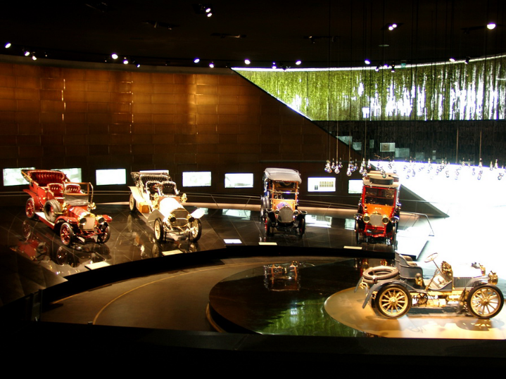 Ο μεγάλος κεντρικός χώρος που φυσικά ονομάζεται Atrium, που αποτελεί το κέντρο αναρρίχησης, είναι και το κέντρο ...στροβιλισμού των 120 ετών ιστορίας της Mercedes, ενώ ταυτόχρονα αποτελεί και το κέντρο πυρασφάλειας του κτιρίου. Διαθέτοντας μια μεγάλη τουρμπίνα αναρρόφησης στην οροφή έχει την δυνατότητα να τραβήξει το καπνό σε περίπτωση φωτιάς, ώστε να δώσει πολύτιμο χρόνο στους επισκέπτες να εκκενώσουν τον χώρο! Ανελκυστήρες «γαντζωμένοι» στους τείχους, με αισθητική art deco βγαλμένοι κατευθείαν από τον Flash Gordon, σε ανεβάζουν στο έβδομο επίπεδο προβάλλοντας ταυτόχρονα μέσω video εικόνες από την ιστορία της Mercedes καθώς ανυψώνονται. Φτάνοντας στον έβδομο εκεί σε καλωσορίζει τι άλλο, το άλογο που δίνει τη θέση του στο πρώτο όχημα που σχεδίασαν οι «πατέρες» της αυτοκίνησης σε μια αίθουσα εμπνευσμένη από την 2001-Οδύσσεια του Διαστήματος που σκηνοθέτησε ο Stanley Kubrick με τα οχήματα πάνω σε γυάλινη γαλακτώδη επιφάνεια φωτισμένη από κάτω. Μυρωδιές παλαιών συνεργείων αναδύονται από το χώρο καθώς αρχίζουμε την ελικοειδή κάθοδό μας στο χρόνο. Περνώντας εμπρός από τις πρώτες εφαρμογές του κινητήρα εσωτερικής καύσης στη γη στον αέρα και στο νερό φτάνουμε στην πιο εντυπωσιακή αίθουσα που δεν είναι άλλη από τη ουσιαστική γέννηση του αυτοκινήτου, τουλάχιστον έτσι όπως το ξέρουμε σήμερα, με τη Mercedes Simplex κάτω από τα απαστράπτουσα κρύσταλλα Swarofski. Ακολουθεί η αίθουσα με τα έργα τέχνης από το 1914 έως το 1945 για να φτάσουμε στα 1960 και τα δημιουργήματα των Hans Arp και για Oscar Niemeyer, βλέπε Gull wing, για να καταλήξουμε στα πιο γνωστά μας. Δεν χρειάζεται βέβαια να αναφέρουμε την ποιότητα των εκθεμάτων που είναι immaculate, ενώ τα καλύτερα επίθετα θα πρέπει να χρησιμοποιήσουμε για τα υλικά που έχουν χρησιμοποιηθεί και τους ενημερωτικούς πίνακες με τις ιστορικές αναδρομές. Όμως η αίθουσα στην οποία ...μείναμε ήταν αυτή με την αγωνιστική ιστορία της Mercedes, η οποία ζωντανεύει εμπρός σου με ήχους και εικόνες.