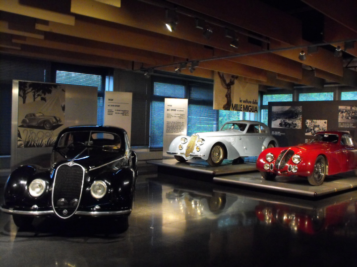 Στο κεντρικό περιστύλιο τα διαμάντια της Alfa Romeo, οι Tipo 158 και 159 με υπερτροφοδοτούμενους κινητήρες 1,5 λίτρων που κατάφεραν να κερδίσουν τα πρώτα μεταπολεμικά πρωταθλήματα του 1950 και 1951, παρά το γεγονός ότι ήταν σχεδιασμένα πριν το πόλεμο.