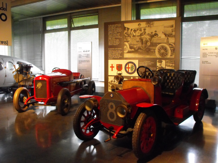 Η ξενάγηση στο μουσείο αρχίζει με το προπατορικό Darracq 8/10 και την πρώτη πραγματική Alfa, από τον Castagna του 1910, αλλά την παράσταση σίγουρα κλέβει το 40/60 Aerodynamica του 1914 που σε σχήμα αυγού προηγήθηκε μερικές δεκαετίες, όλων των «ενός όγκου» αυτοκινήτων, σχεδιασμένη από τον Κόμη Marco Ricotti, που ήταν συνεπαρμένος από την αεροδυναμική και κατασκευάστηκε από την Carrozzeria Castagna.