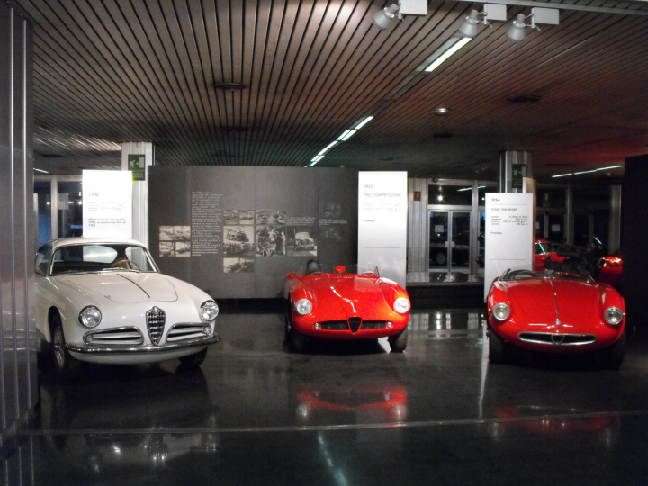 Πιο κάτω τα μεταπολεμικά 6C 2500 Freccia d’Oro του 1947 και 6C 2500 Villa d’Este του 1950, μπορεί να χρησιμοποιούν κινητήρες και πλαίσια που προέρχονται από τα απομεινάρια του πολέμου, αλλά η σχεδίαση έχει προχωρήσει και οι μεγάλες αλλαγές βρίσκονται πλέον στον αέρα. Στο αέρα που φυσά προς τη στην Disco Volante του 1952 και προς την 1900 S του 1954. Μόλις ένα χρόνο αργότερα προσγειώνονται τα αυτοκίνητα που θα άλλαζαν τον τρόπο που σκεφτόμαστε το ίδιο το αυτοκίνητο, οι Giulietta Spider, Giulietta Berlina και Giulietta Sprint. Κατεβαίνουμε ένα όροφο ακόμα για να συναντήσουμε την Giulia Ti του 1962 και το Duetto του 1966. Η GT Junior συνεχίζει να καίει καρδιές όπως τη πρώτη μέρα της παρουσίασής της το 1974 για να φτάσουμε στην Alfasud. Και στο υπόγειο, τα αγωνιστικά, οι Stradale, οι Zagato και οι Formula 1, μαζί με τις 155 του DTM.