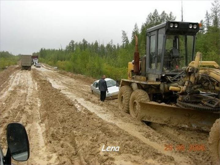 την κατασκευή του δρόμου, αφού οι βροχές τον μετατρέπουν σε ένα