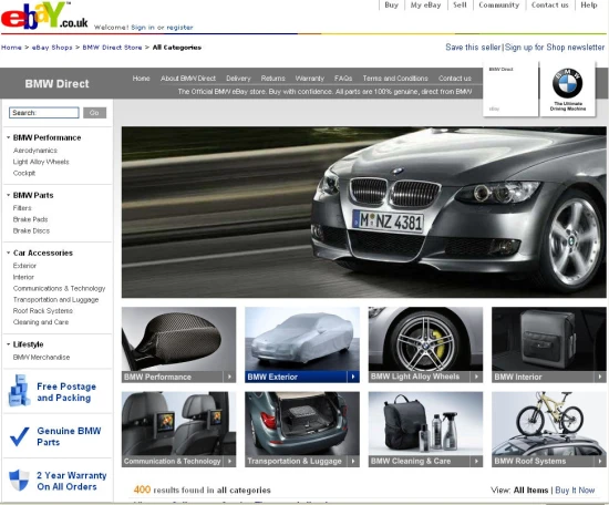 Η βαυαρική εταιρεία κάνει πλέον πιο εύκολη την αναζήτηση ανταλλακτικών για τους εξοικειωμένους με το internet πελάτες της, χάρη στην συνεργασία της με το ευρέως διαδεδομένο eBay. Το νέο ηλεκτρονικό κατάστημα BMW Direct λειτουργεί πλέον μέσω του ebay.co.uk, κάνοντας την ανεύρεση των ανταλλακτικών και των απαραίτητων αναλώσιμων για service, μια εξαιρετικά απλή και εύκολη υπόθεση.