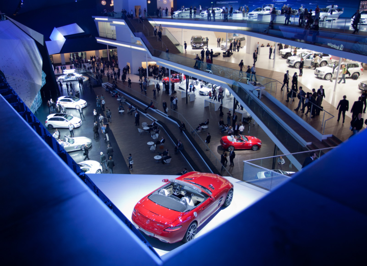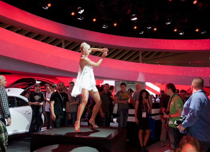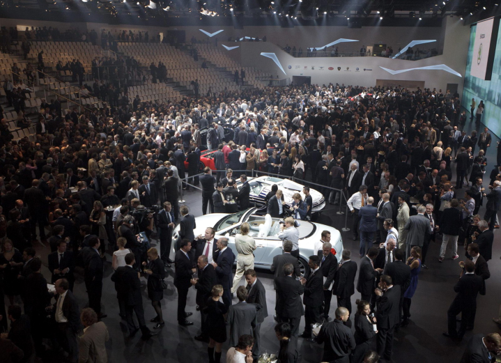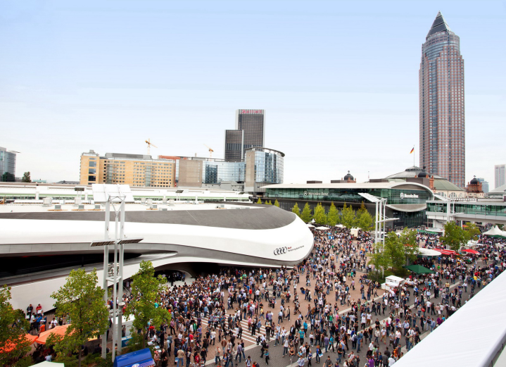 Δύο φίλοι επισκέπτονται το σαλόνι αυτοκινήτου της Φρανκφούρτης, βλέπουν από κοντά όλα τα νέα μοντέλα, φωτογραφίζουν ό,τι τους τραβά την περιέργεια (βλέπε φωτο δίπλα) και ακούνε ειδήσεις και κουτσομπολιά στα περίπτερα των εταιρειών και στους διαδρόμους της έκθεσης, τα οποία σχολιάζουν στον παρακάτω διάλογο.