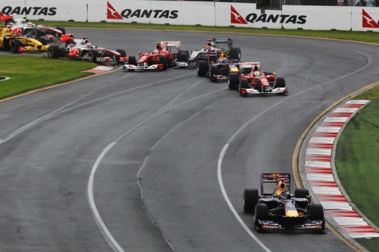 Ένα τέταρτο πριν από την έναρξη του αγώνα το ενδιαφέρον άρχισε να εκτοξεύεται. Η βροχή έκανε την εμφάνισή της και οι ομάδες άλλαξαν τα ελαστικά βάζοντας τα ενδιάμεσα. Αυτή η αλλαγή ήταν κάτι που δυσκόλευε τους προπορευόμενους και έδινε ευκαιρία στους πιο πίσω οδηγούς να περιμένουν ένα περίεργο αγώνα. Κλειδί στην εκκίνηση στάθηκαν οι άσπρες γραμμές που βρίσκονταν στο grid. Η πίστα του Albert Park δεν είναι μόνιμη πίστα και οι διαγραμμίσεις έκαναν την ζωή δύσκολη στους οδηγούς. Αυτός που την αισθάνθηκε περισσότερο από όλους ήταν ο Fernando Alonso. Ο Ισπανός έκανε άσχημη εκκίνηση και έδωσε την ευκαιρία στον Felipe Massa να τον περάσει από την εσωτερική. Ο Massa πέρασε και τον Webber και στην πρώτη στροφή βρέθηκε πίσω από τον Vettel. Λίγο πιο πίσω σχηματίστηκε μια τριπλέτα Button, Alonso και Schumacher που ο ένας δίπλα στον άλλο ήθελαν να στρίψουν. Ο Button μη έχοντας χώρο να περάσει έπεσε στον Alonso και αυτός έπεσε στον Schumacher. Ο Γερμανός με κομμένη μπροστινή αεροτομή και ο Ισπανός περιμένοντας να περάσουν όλοι μετά από το τετ-α-κε που έκανε, ακολούθησαν τελευταίοι. Πριν ολοκληρωθεί ο πρώτος γύρος ο Kobayashi είχε μια πολύ άσχημη έξοδο πέφτοντας πρώτα πάνω στον Huelkenberg και τον Buemi αναγκάζοντας το αυτοκίνητο ασφαλείας να μπει στην πίστα. Το ατύχημα ήταν περίεργο γιατί η μπροστινή αεροτομή ξεκόλλησε και πέρασε κάτω από το μονοθέσιο. Αυτό είναι ότι χειρότερο για έναν οδηγό. Στην περίπτωση αυτή δεν έχει κανέναν έλεγχο του μονοθεσίου του. Ήταν η δεύτερη φορά που ξεκόλλησε μπροστινή αεροτομή στην Sauber κάτι που είναι ανησυχητικό. Πάντως δεν μας είπαν ποιος θα πληρώσει την ζημιά που έκαναν στον Sebastian Buemi και ήταν της τάξης των 150.000 Ευρώ. Ο Trulli με την Lotus δεν ξεκίνησε ποτέ λόγω προβλημάτων στα υδραυλικά.