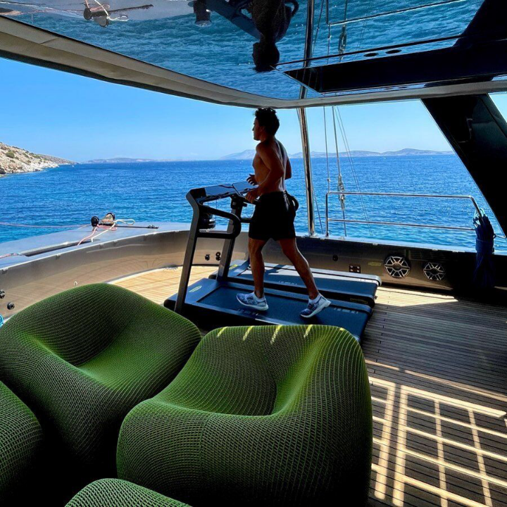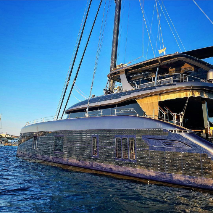 Το ζευγάρι περιηγήθηκε στις ελληνικές θάλασσες με ένα ηλεκτρικό καταμαράν. Πρόκειται για το 80 Sunreef Power Eco Unlimited Range το οποίο κοστίζει 7,3 εκατομμύρια ευρώ και κινείται αποκλειστικά με ρεύμα. Η παραγωγή της ενέργειας γίνεται από φωτοβολταϊκά πάνελ τα οποία καλύπτουν το μεγαλύτερο ποσοστό του σκάφους, ενώ στην κορυφή βρίσκονται και δύο ανεμογεννήτριες.
