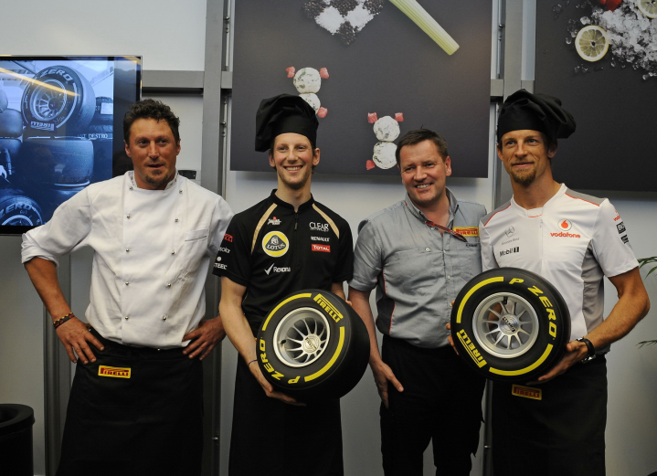Από τα μονοθέσια της Formula 1 στην κουζίνα. Οι Jenson Button και Romain Grosjean έβγαλαν για λίγο τη φόρμα του πιλότου F1 και φόρεσαν την ποδιά του… σεφ, συμμετέχοντας σε αγώνα μαγειρικής υπό το έμπειρο βλέμμα του Paul Hembery, του αγωνιστικού διευθυντή της Pirelli. Η προσπάθεια των δύο οδηγών και η γευσιγνωσία μερικών γαστρονομικών σπεσιαλιτέ από το motorhome της Pirelli αποτέλεσαν το σκηνικό παρουσίασης του “Miles & Meals – handcrafted by Pirelli”: ενός βιβλίου μαγειρικής που αποκαλύπτει τα μυστικά των σεφ της Pirelli και εισέρχεται στο άδυτο του έμπειρου προσωπικού της.