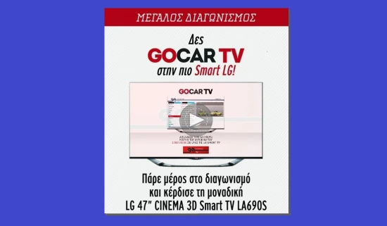 Για την εύκολη περιήγηση στο μενού της GOCAR TV, δες περισσότερα στο video. Για να κερδίσεις την LG CINEMA 3D smart TV 47 ιντσών, μην περιμένεις άλλο. Συμπλήρωσε τα στοιχεία σου τώρα εδώ.