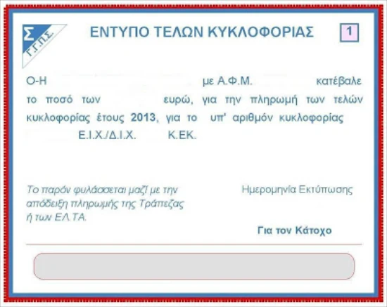 ΤΕΛΗ ΚΥΚΛΟΦΟΡΙΑΣ 2013 ΠΟΥ ΙΣΧΥΟΥΝ ΜΕΧΡΙ ΣΗΜΕΡΑ