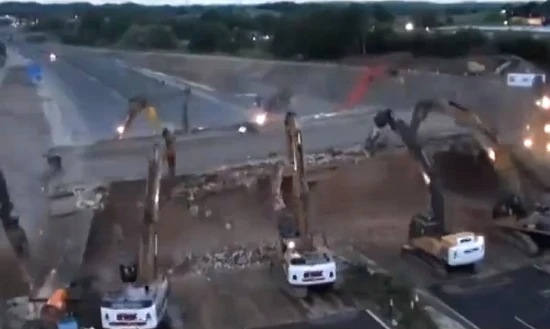 Ένα πολύ ενδιαφέρον time lapse που συμπιέζει σε 5’:28”, ένα 36ωρο. Όσο χρειάστηκε ένα συνεργείο να… εξαφανίσει μια γέφυρα πάνω από μεγάλο δρόμο