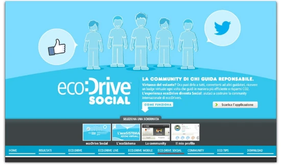 Οι οδηγοί αυτοκινήτων της Fiat μπορούν να μοιραστούν στο Facebook και το Twitter τα αποτελέσματα των eco:Drive διαδρομών τους, αποδεικνύοντας έτσι τη βελτίωσή τους σε ότι αφορά την οικονομική οδήγηση