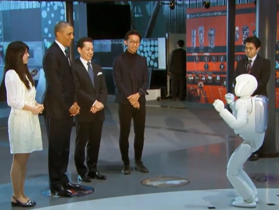 Κατά την επίσκεψή του στο Miraikan (National Museum of Emerging Science and Innovation), ο Πρόεδρος των ΗΠΑ Μπάρακ Ομπάμα συναντήθηκε με το ανθρωποειδές ρομπότ της Honda, τον Asimo. Μάλιστα, ο Asimo δεν έχασε την ευκαιρία να ρίξει ένα “σουτάκι” στον Ομπάμα. Το σουτ του ιαπωνικού ρομπότ ήταν καλό, δεν μπορούμε όμως να πούμε το ίδιο για το κοντρόλ του Αμερικανού Προέδρου, ο οποίος αργότερα δήλωσε ολίγον τρομαγμένος από τις ικανότητες του Asimo…
