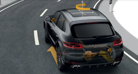 Η Macan, εκτός από ταχύτητα (όπως κάθε Porsche) υπόσχεται σπορ συμπεριφορά και αυξημένη πρόσφυση σε δύσκολα εδάφη. Για να μας δείξει την αποτελεσματικότητα του συστήματος διαχείρισης πρόσφυσης Porsche Traction Management (PTM), η Porsche ετοίμασε το παραπάνω video. Θυμίζουμε πως το PTM περιλαμβάνεται στο βασικό εξοπλισμό όλων των Macan. Μαζί με τα άλλα στοιχεία του συστήματος - τον ηλεκτρονικά ελεγχόμενο πολύδισκο συμπλέκτη, το αυτόματο μπλοκέ διαφορικό (ABD) και το σύστημα ελέγχου ολίσθησης (ASR) – το σύστημα τετρακίνησης φροντίζει για ό,τι έχει να κάνει με την πρόσφυση και την ασφάλεια. Στη λειτουργία του συνδράμει το σύστημα κατανομής ροπής Porsche Torque Vectoring Plus (PTV Plus), το οποίο κατανέμει μεταβαλλόμενες ποσότητες ροπής στους πίσω τροχούς και λειτουργεί σε συνδυασμό με ένα ηλεκτρονικά ελεγχόμενο πίσω μπλοκέ διαφορικό.