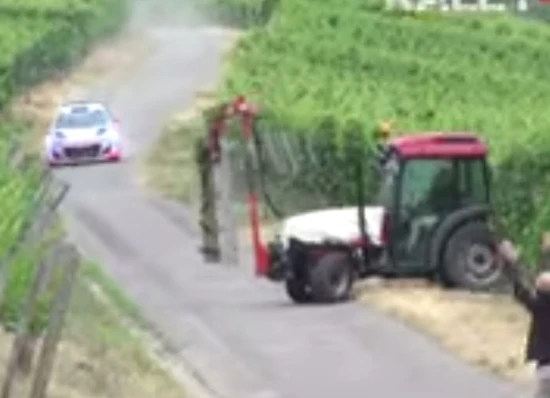 Ο Thierry Neuville «τα είδε όλα» όταν ξαφνικά στα δοκιμαστικά που πραγματοποιούσε για το WRC Γερμανίας, ένα τρακτέρ έκανε την εμφάνισή του στη μέση του δρόμου/ειδικής διαδρομής. Ο οδηγός του αγωνιστικού έπεσε στα φρένα και κατάφεραν να αποφύγουν το μοιραίο.