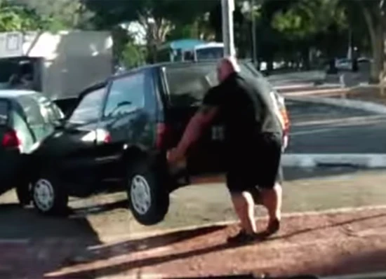 Ο συγκεκριμένος κύριος φαίνεται ότι εκνευρίστηκε αρκετά, όταν κάποιος ασυνείδητος οδηγός πάρκαρε το Fiat Uno του επάνω στον ποδηλατόδρομο. Χωρίς να το πολυσκεφτεί, ο ποδηλάτης κατέβηκε από τη σέλα του και σήκωσε κυριολεκτικά με τα χέρια το πίσω τμήμα του αυτοκινήτου και το μετέφερε στην άκρη ώστε να μην ενοχλεί την ειδική διαδρομή. Αφού ολοκλήρωσε την δύσκολη αυτή προσπάθεια, ανέβηκε ξανά επάνω στο ποδήλατο και συνέχισε να απολαμβάνει την… ποδηλατάδα του.