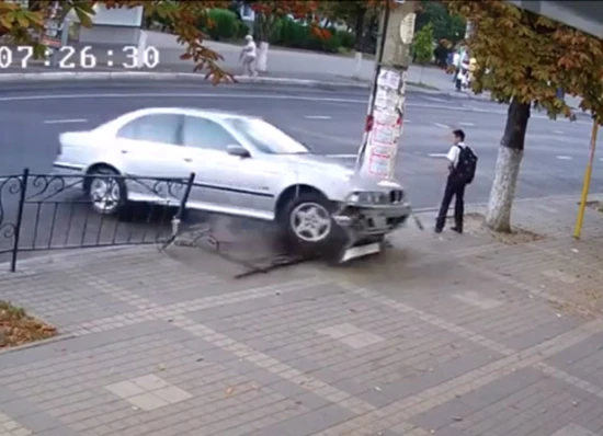 Μόλις μία κολώνα σταμάτησε την ξέφρενη πορεία μιας BMW Σειρά 5, η οποία σίγουρα δεν θα μπορούσε να αποφύγει τον μικρό μας φίλο. Μόλις λίγα δευτερόλεπτα νωρίτερα βρισκόταν σε σημείο που θα μπορούσε τουλάχιστον να τον τραυματίσει, αλλά μια ανώτερη δύναμη «έσπρωξε» το παιδί λίγα μέτρα παρακάτω.