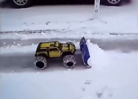 Ξεχάστε το φτυάρισμα τον χειμώνα! Η καλύτερη ευκαιρία είναι τώρα και να ζητήσετε από τον Άγιο Βασίλη ένα ξεχωριστό δώρο… ένα τηλεκατευθυνόμενο! Θυμάστε; Όπως τότε που ήμασταν παιδιά και μας είχε γυαλίσει ένα ωραίο μοντελάκι, το οποίο μπορούσαμε να το ελέγξουμε μέσω ενός μεγάλου χειριστηρίου. Αυτό όμως το τηλεκατευθυνόμενο δεν είναι όπως όλα τα συνηθισμένα, αλλά είναι ένα τζιπάκι που ο δημιουργός του έχει εφαρμόσει στο εμπρός μέρος ένα φτυάρι μεταμορφώνοντάς το σε εκχιονιστικό! Πραγματικά πείτε μου, δεν θα σας φαινόταν χρήσιμο;
