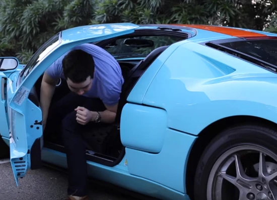 3.Οι πόρτες του Ford GT είναι πολύ εντυπωσιακές και ιδιαίτερες. Κάθε φορά όμως που επιβιβάζεστε τότε θα πρέπει να προσέξετε το κεφάλι σας, όταν κλείνετε την πόρτα. Λόγω σχήματος μπορεί να σας χτυπήσει στο πάνω αριστερό σημείο του κεφαλιού σας.