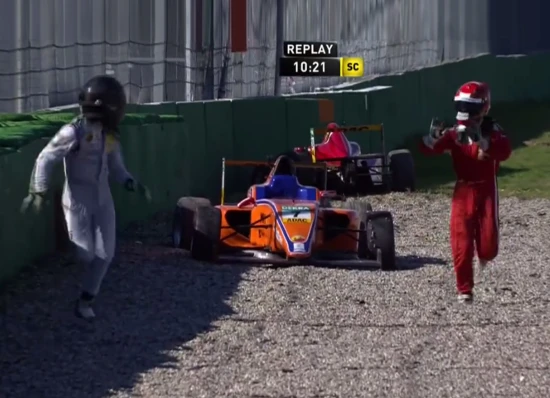 Στην προκειμένη περίπτωση έχουμε να κάνουμε με μια επαφή που είχε ως αποτέλεσμα δύο μονοθέσια να βγουν εκτός συναγωνισμού. Το συμβάν εκτυλίχτηκε σε αγώνα της Formula 4, ωστόσο η συνέχεια ήταν αυτή που μας έκανε να χαμογελάσουμε. Ο ένας οδηγός εκ των δύο βγήκε γρήγορα από το μονοθέσιο και ξεκίνησε να τρέχει προς το μέρος του δεύτερου. Ο λόγος; Άγνωστος! Αλλά σίγουρα δεν θα ήταν για καλό, παρόλο που του έκανε νοήματα να σταματήσει… και ο αγώνας συνεχίζεται για… τη σωματική του ακεραιότητα αυτή τη φορά και όχι για τη νίκη.