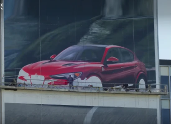 Ξεχάστε τις παραδοσιακές αφίσες του δρόμου, οι οποίες τυπώνονται ηλεκτρονικά και το μόνο που έχουν να κάνουν είναι να τις στήσουν σε κάποιο σημείο. Η Alfa Romeo αποφάσισε να φτάσει την διαφήμιση σε άλλο βαθμό, βάφοντας έναν τεράστιο καμβά μία φωτογραφία της νέας Stelvio. Ο καμβάς αυτός είναι στο ύψος μιας πολυκατοικίας και οι ζωγράφοι έκαναν μια φανταστική δουλειά, απεικονίζοντας με μεγάλη λεπτομέρεια το νέο SUV της ιταλικής εταιρείας.