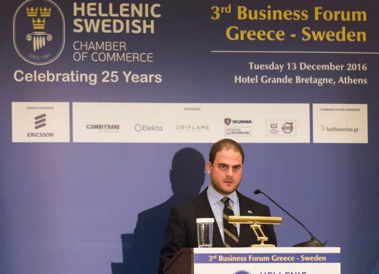 Τα πιο πρόσφατα ελληνικά οικονομικά στοιχεία, καθώς και οι κατευθυντήριες γραμμές για την προσέλκυση επενδύσεων και τη μετάβαση της χώρας σε νέα εποχή παρουσιάστηκαν την Τρίτη 13 Δεκεμβρίου στο 3ο Επιχειρηματικό Φόρουμ Ελλάδος-Σουηδίας. Η διοργάνωση πραγματοποιήθηκε από το Ελληνo-Σουηδικό Επιμελητήριο στο Ξενοδοχείο Μεγάλης Βρετανία.