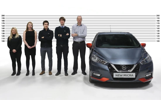 Και αυτό διότι σχεδίασε την καμπίνα του μοντέλου της (το οποίο δεν ξεπερνά σε μήκος τα 4 m) χρησιμοποιώντας ως «μοντέλα» 200 εργαζόμενους στο τεχνικό κέντρο της, στο Cranfield της Μ. Βρετανίας. Ο πιο ψηλός φθάνει τα 2 μέτρα και η πιο κοντή υπάλληλος το 1,52 μ. Οι έρευνες που επικαλείται η Nissan δείχνουν ότι το μέσο ύψος ενός Ολλανδού είναι σήμερα 1,82 μ., ενώ μίας Ελληνίδας 1,60 μ.