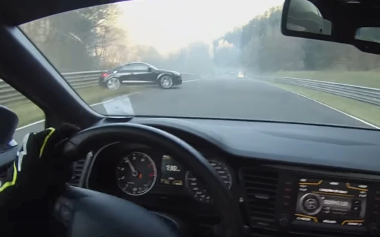 Ένα Audi TT RS έχασε τον έλεγχο, αφού πάτησε επάνω σε κηλίδες λιπαντικού λόγω ενός συμβάντος που έγινε λίγα λεπτά νωρίτερα. Το αποτέλεσμα ήταν να «στριφογυρίσει» μέσα στην πίστα με κίνδυνο τόσο τον οδηγό του TT, όσο και τον οδηγό που τον ακολουθούσε με το SEAT Leon Cupra.