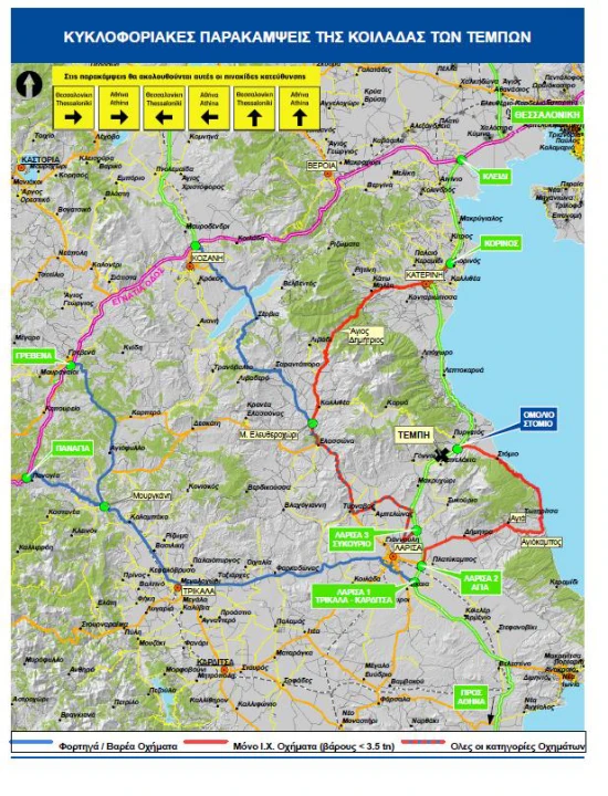 Για όσο χρονικό διάστημα θα παραμείνουν κλειστά τα Τέμπη λόγω των κατολισθήσεων το υπουργείο Υποδομών και Μεταφορών έδωσε στη δημοσιότητα χάρτες με τις εναλλακτικές διαδρομές που μπορούν να ακολουθήσουν τα οχήματα ανάλογα με τον τύπο τους.