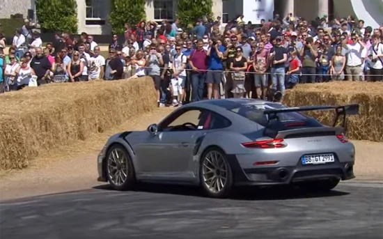 Στο Goodwood Festival of Speed παρουσιάστηκε επίσημα η ισχυρότερη Porsche 911, GT2 RS. Το εκρηκτικό μοντέλο μπήκε στην πίστα για να πραγματοποιήσει μια γρήγορη ανάβαση, ωστόσο ο οδηγός είχε τη φαεινή ιδέα να σταματήσει και να προχωρήσει σε donuts. 700 ίπποι και όλη η ροπή στον πίσω άξονα είναι σίγουρο ότι με μια γκαζιά το σπορ μοντέλο θα γυρίσει με μεγάλη ευκολία.