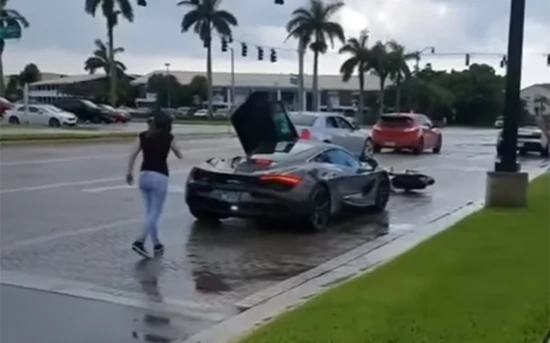 McLaren κύλισε μόνη της και χτύπησε τη μηχανή μαζί με την