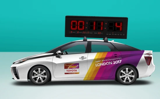 Σήμερα Κυριακή 6 Αυγούστου είναι προγραμματισμένο να διεξαχθούν οι δύο μαραθώνιοι – ανδρών και γυναικών – του Παγκοσμίου Πρωταθλήματος Στίβου του Λονδίνου. Μπροστά από τους αθλητές θα κινείται ένα Toyota Mirai, ως το επίσημο όχημα χρονομέτρησης. Όπως οι αθλητές έτσι και το αυτοκίνητο υδρογόνου θα διανύσει τη διαδρομή των 42.195 μέτρων.