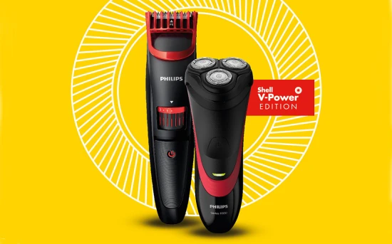 Κάθε φορά που οι καταναλωτές ανεφοδιάζουν το όχημά τους με τουλάχιστον 20 λίτρα από τα καύσιμα Shell V-Power, Shell V-Power Diesel ή Shell V-Power Racing έχουν τη δυνατότητα να αποκτήσουν μία ξυριστική μηχανή ή ένα trimmer με επιπλέον χρέωση μόλις 19,90 €.
