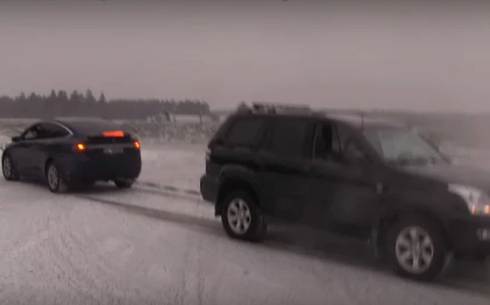 Tug War ανάμεσα σε Model X και Land Cruiser (video)