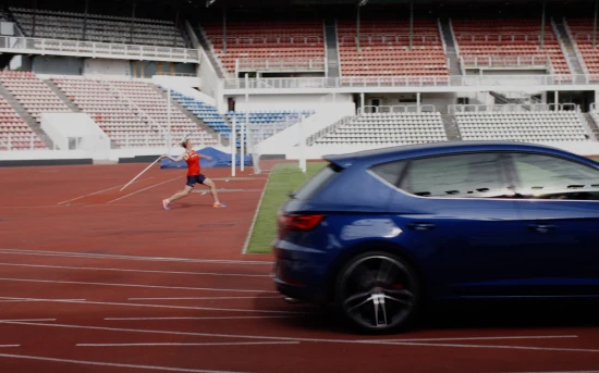 Απέναντι στο Leon Cupra με τον 2.0 TSI των 300 ίππων βρέθηκε η 36χρονη Τσέχα ακοντίστρια Barbora Spotakova, χρυσή ολυμπιονίκης, παγκόσμια πρωταθλήτρια και κάτοχος του παγκόσμιου ρεκόρ με 72,28 μέτρα.