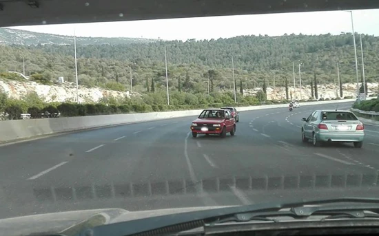 Οι οδηγοί που κινούνταν κανονικά στο ρεύμα προς τον Καρέα κατά τις 7 μμ, είδαν έκπληκτοι ένα κόκκινο Toyota Starlet να έρχεται καταπάνω τους! Η γυναίκα οδηγός του μικρού αυτοκινήτου είτε είχε μπει ανάποδα από κάποια είσοδο είτε αποφάσισε να κάνει αναστροφή.