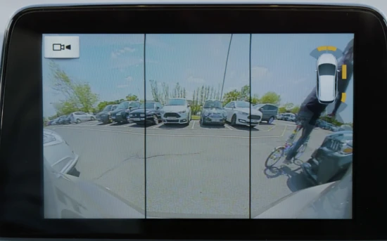 Η κάμερα είναι τοποθετημένη πάνω από την πίσω πινακίδα κυκλοφορίας και με το πάτημα του αντίστοιχου συμβόλου στην οθόνη αφής εμφανίζεται εικόνα 180 μοιρών.