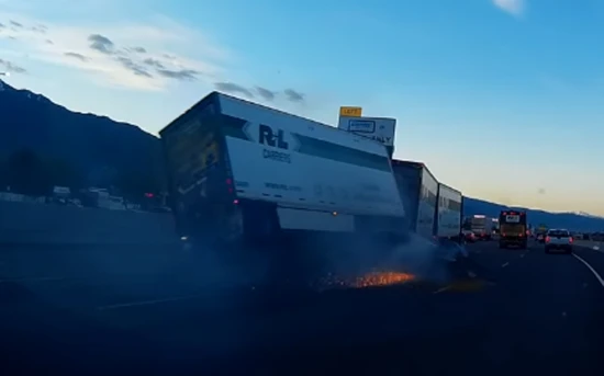 Κατά τη διάρκεια μιας καταδίωξης στη Utah της Αμερικής, ο οδηγός του sedan έχασε τον έλεγχο του αυτοκινήτου με αποτέλεσμα να πέσει επάνω σε μια νταλίκα, που μάλιστα μετέφερε 3 κοντέινερ. Ο οδηγός ήθελε να ξεφύγει από τα όργανα της τάξης, ώστε να αποφύγει κάποιο πρόστιμο που σχετίζεται με ένα τρακάρισμα που έκανε νωρίτερα. Παρά το τρακάρισμα που κόβει την ανάσα, κανένας δεν τραυματίστηκε σοβαρά, ενώ αξίζει να αναφερθεί ότι από το άμεσα εμπλεκόμενο αυτοκίνητο μετέφερε δύο άντρες και δύο γυναίκες.