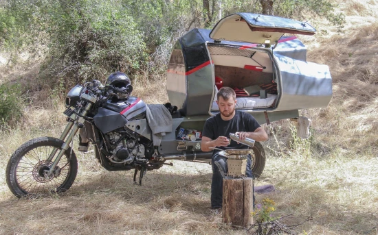 Μετά από 4 μήνες δουλειάς και αφού συγκέντρωσε χρήματα μέσω διαδικτυακής καμπάνιας, το MotoHome είναι έτοιμο. Το τροχόσπιτο σε δύο τροχούς βασίζεται σε Honda CBR 1000 F του 1993, ενώ το εμπρός μέρος προέρχεται από CR 500. Το συνολικό μήκος φθάνει τα 3,65 μέτρα, ενώ το μεταξόνιο είναι 2,6 μέτρα. Ο χώρος για τον ύπνο μπορεί να φιλοξενήσει έναν ενήλικα κανονικού ύψους.