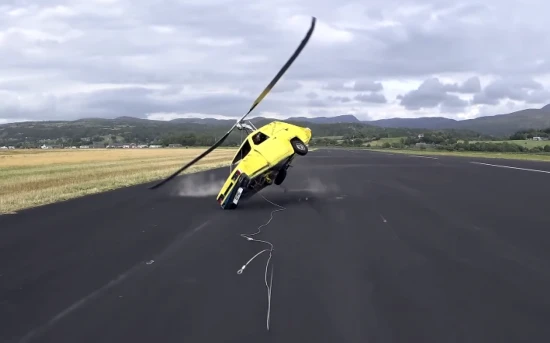 Στο παραπάνω βίντεο ο οδηγός τροποποίησε ένα αυτοκίνητο, τοποθετώντας έναν μεγάλο έλικα στην οροφή του. Επειδή όμως ήθελε να είναι ελαφρύ, προφανώς αφαίρεσε τον κινητήρα. Για να πετύχει όμως την επιτάχυνση που ήθελε για να απογειωθεί, ένα pickup τραβούσε το μικρό όχημα. Αν και αρχικά πιστεύαμε ότι δεν θα μπορούσε να απογειωθεί, τελικά μας διέψευσε. Το αποτέλεσμα ήταν να μην μπορέσει να το κρατήσει στον αέρα και να πέσει… ηρωικά! Ο οδηγός-πιλότος δεν έπαθε τίποτα.