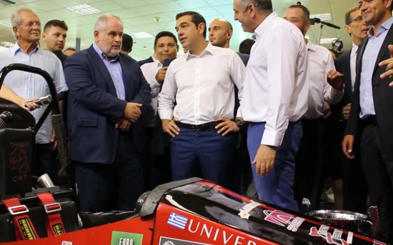 Ο κ. Τσίπρας ενημερώθηκε από μέλος της ομάδας για λεπτομέρειες του μονοθεσίου αλλά και της γενικότερης προσπάθειας στο θεσμό Formula Student. Μάλιστα το περασμένο καλοκαίρι η ελληνική ομάδα κατέλαβε τη 2η θέση στη γενική κατάταξη στο διαγωνισμό Formula Student που διεξήχθη στο Silverstone της Αγγλίας με τη συμμετοχή 36 πανεπιστημιακών ομάδων από όλο τον κόσμο!