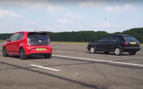 Αν και η σύγκριση γίνεται συνήθως με την πρώτη γενιά του Golf GTI, το CarWow έβαλε το ισχυρότερο up! δίπλα στη δεύτερη γενιά Golf GTI. Το Mk2 είναι πιο βαρύ από το up! GTI και εφοδιάζονται με 1.8 κινητήρα και 1.0 turbo κινητήρα αντίστοιχα.