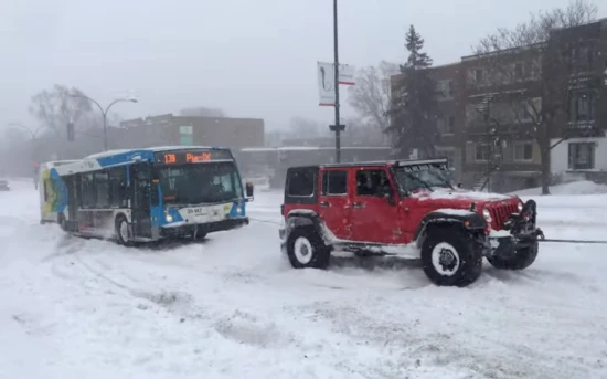 Ρωτήστε και έναν οδηγό λεωφορείου από το Μόντρεαλ του Καναδά, το όχημα του οποίου ακινητοποιήθηκε κατά τη διάρκεια ενός δρομολογίου. Για καλή του τύχη, όμως, έκαναν την εμφάνισή τους τρία «θηριώδη» αυτοκίνητα, που πραγματικά δεν… καταλαβαίνουν από χιόνια.