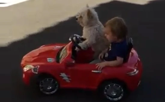 Στο παραπάνω βίντεο παρακολουθούμε ένα χαριτωμένο σκυλάκι που βρίσκεται μέσα σε ένα ηλεκτρικό αυτοκινητάκι μαζί με ένα μικρό παιδί. Αρχικά φαίνεται ότι το τετράποδο είναι αυτό που χειρίζεται το τιμόνι, αλλά είμαστε σχεδόν σίγουροι ότι κάποιος μεγαλύτερος επιλέγει την πορεία του αυτοκινήτου, μιας και τέτοιου είδους παιχνίδια διαθέτουν και απομακρυσμένο έλεγχο μέσω τηλεχειριστηρίου.