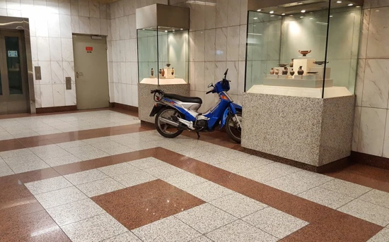 Ο λόγος για ένα "πακάκι" παρκαρισμένο εντός του σταθμού, ανάμεσα μάλιστα στις προθήκες με εκθέματα αρχαίων αντικειμένων.