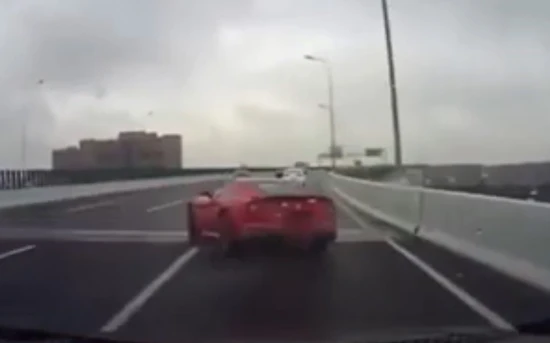Λίγο το ολισθηρό οδόστρωμα από τη βροχή, λίγο η ασυνείδητη συμπεριφορά δια των ελιγμών, ο κάτοχος της Ferrari F12 έχασε τον έλεγχό της, κάνοντάς την «σμπαράλια».