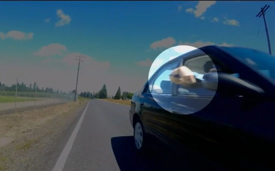 Αίφνης, και χωρίς να υπάρχει κάποια προφανής αιτία, ο συνοδηγός του επερχόμενου αυτοκινήτου, φαίνεται να κρατά ένα αιχμηρό αντικείμενο στο χέρι του, έχοντας ως πρόθεση να τραυματίσει τον ποδηλάτη.