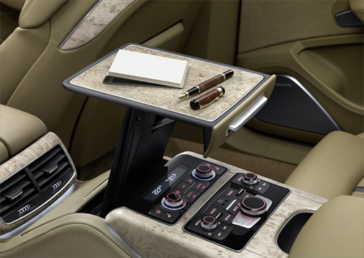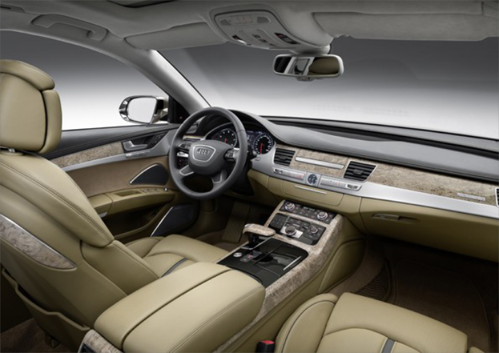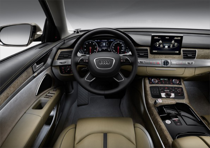 Το νέο Audi A8 είναι το πρώτο αυτοκίνητο παραγωγής παγκοσμίως, το οποίο διαθέτει προαιρετικά "εργοστασιακό" σύστημα παροχής ασύρματου internet στην καμπίνα των επιβατών. Μέχρι και οχτώ τερματικά, όπως Laptop, Netbook, i-Phone, i-Pad κτλ. μπορούν ταυτόχρονα να λειτουργούν έχοντας πρόσβαση στο Internet, εξυπηρετώντας ιδανικά τον συνοδηγό και τους επιβάτες ταυτοχρόνως. Η πρόσβαση στο Internet, γίνεται με τη χρήση δικτύου UMTS «Universal Mobile Telecommunications System» μέσω μιας κάρτας SIM, η οποία τοποθετείται στο τηλέφωνο του αυτοκινήτου ή σε ένα κινητό τηλέφωνο με λειτουργία Bluetooth. Το δίκτυο εξυπηρετείται χάρη σε μια κεραία στην οροφή του αυτοκινήτου που το υποστηρίζει. Η μέγιστη ταχύτητα της μετάδοσης των δεδομένων, στην καμπίνα των επιβατών μπορεί να φτάσει τα 7,2Mbit/sec, ενώ αυτά προστατεύονται από πρωτόκολλο ασφαλείας WPA2.