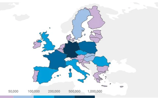 εργασίας), με τη Γαλλία στη 2η θέση (223.000) και την Πολωνία στην